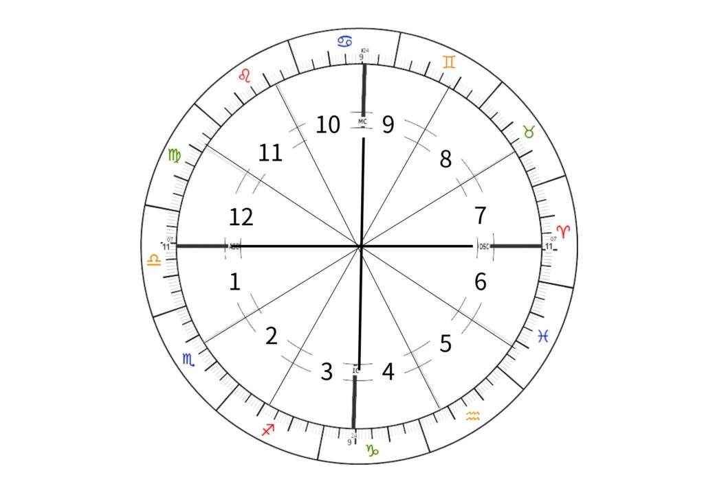 ハウスは、1日24時間の太陽の動きを12分割して、ひとつひとつに人生のテーマをあてはめたものです。