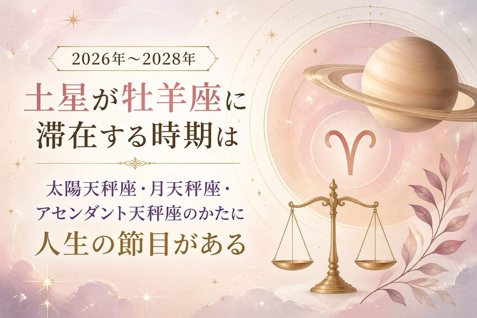 2026年から2028年は土星が牡羊座に滞在しますので、向かい側の天秤座に太陽や月、アセンダントがある方は、土星の影響をうけることになります。
